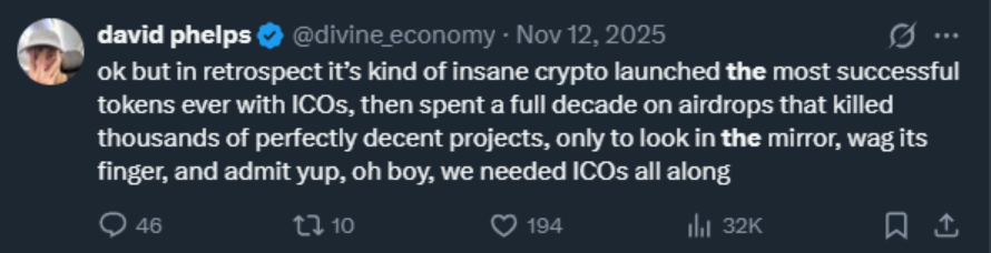 So, if 2025 was the year of regulatory clarity (which was the main setback against ICOs), it makes sense that 2026 will be the year of the ICO Renaissance. History is not the same, but it often rhymes, and we might see some of the major crypto players be born out of this new era of ICOs.