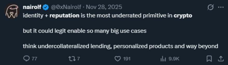 It’s the thing allowing you to filter bad actors, scammers, impersonators ( @ ethos_network ). It’s what allows you to filter extractors, sybils, and misaligned investors ( @ legiondotcc ). It’s also the thing that allows you to find credible, genuine, and impactful voices in the space ( @ KaitoAI before the InfoFi craze).