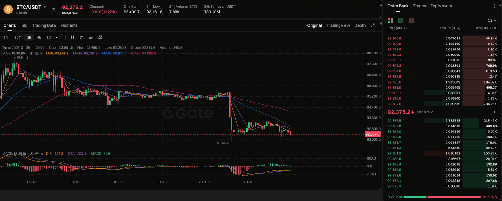 Bitcoin has recently held steady near $92,000, while global equity markets continue to climb. As of January 20, 2026, Bitcoin traded around $92,363, showing only minor corrections and maintaining a strong consolidation at elevated levels.