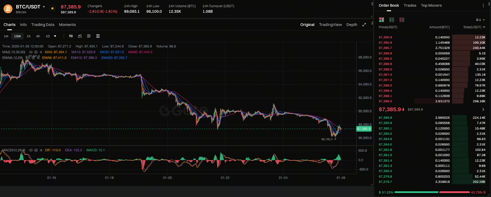 As of January 26, 2026, Bitcoin is trading around $87,385, with neither bulls nor bears showing clear dominance. At the same time, the Kimchi Premium is steadily approaching a key level. Technical analysis suggests that a decisive breakout could signal the emergence of a new long signal.