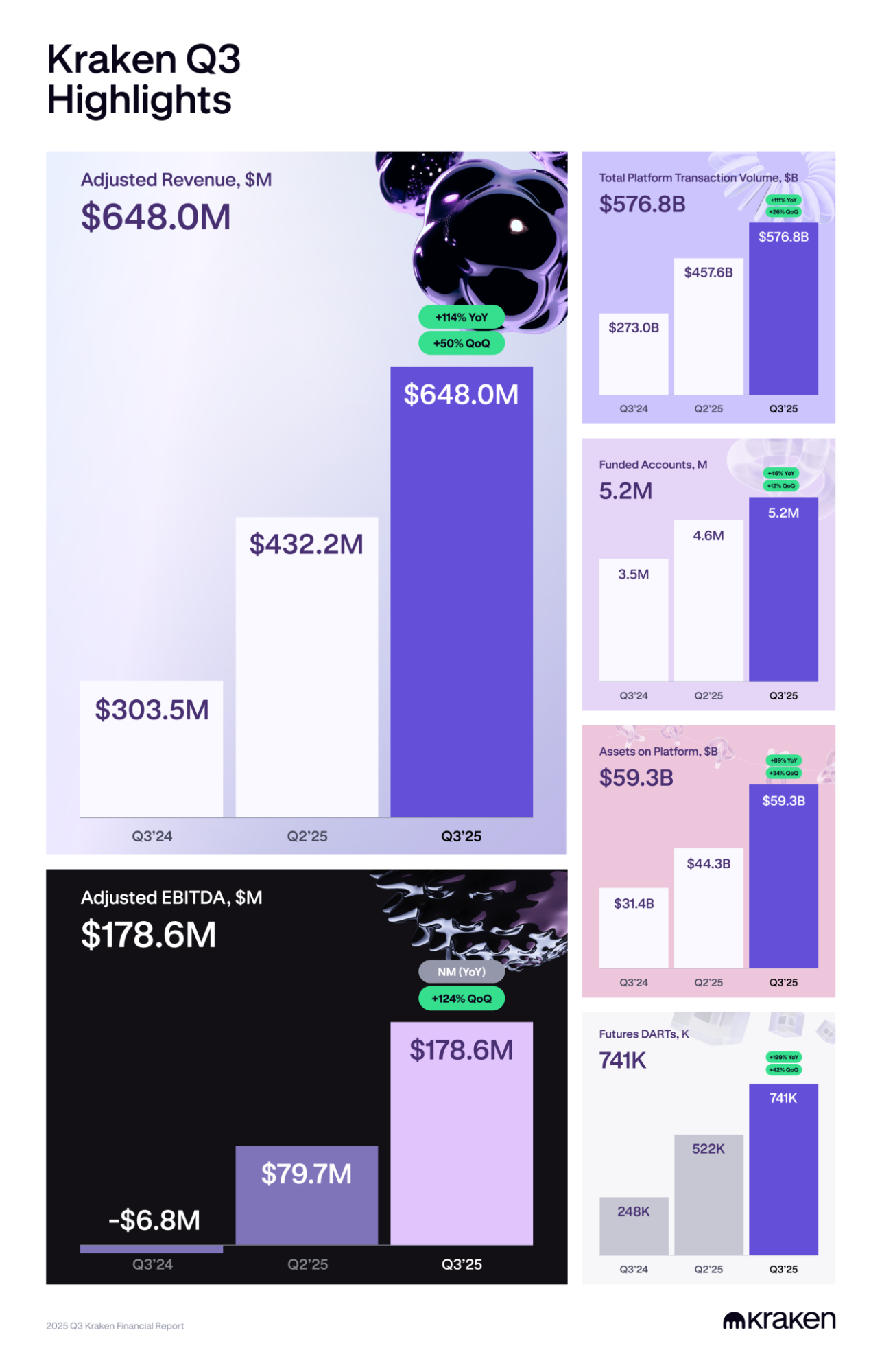 2024 revenue reached $1.5 billion, with adjusted EBITDA exceeding $400 million. In Q3 2025 alone, revenue hit $648 million, up 50% year-over-year. The platform manages $59.3 billion in assets and posted $576.8 billion in quarterly trading volume.