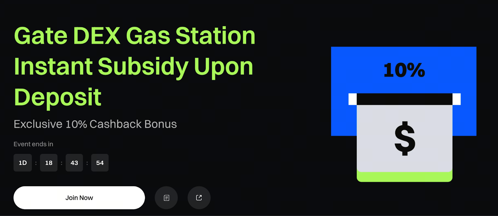 For active on-chain traders, Gate is offering additional incentives. During the event, users who achieve a cumulative trading volume of more than 2,000 USDT on Gate DEX and continue to pay network fees via the Gas Station will receive a 10% cashback on their gas deposits.
