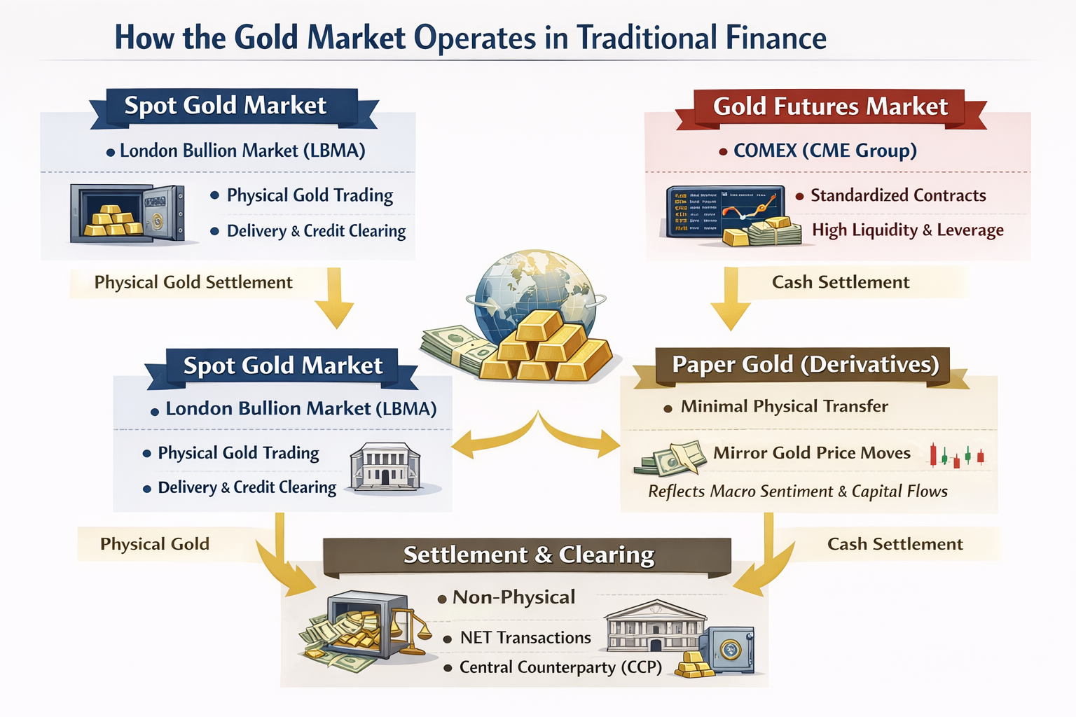 This structure is central to understanding how gold prices are formed in traditional financial markets. Understanding how the gold market functions is essential for managing liquidity, assessing price volatility, and building effective hedging and asset allocation strategies.
