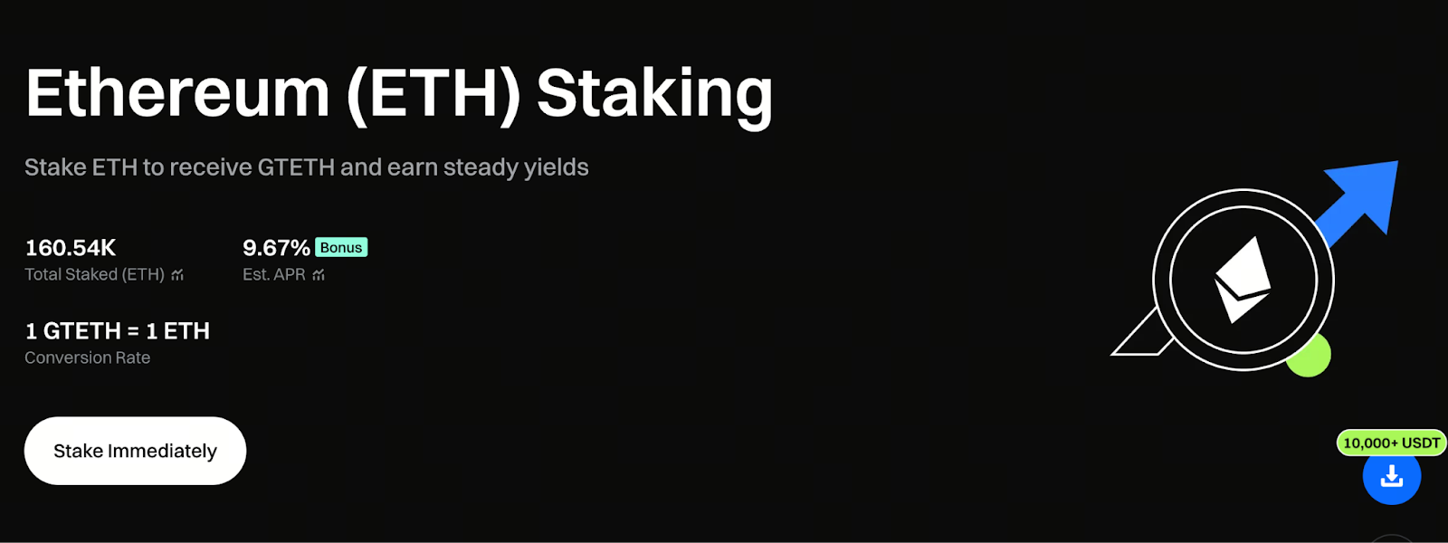 Unlike traditional staking, which requires periodic reward claims, GTETH offers a more intuitive approach. Staking rewards from Ethereum PoS, plus Gate’s additional GT incentives, are continuously accumulated into GTETH’s value over time.